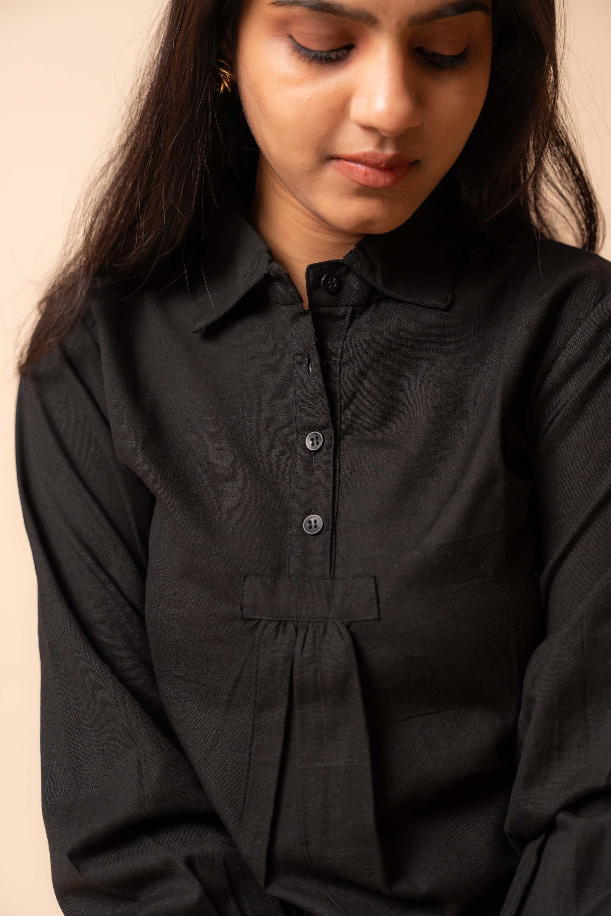 - Additional details: Front buttons placket, Small Gathering on the front, C Cut, High Low Top
