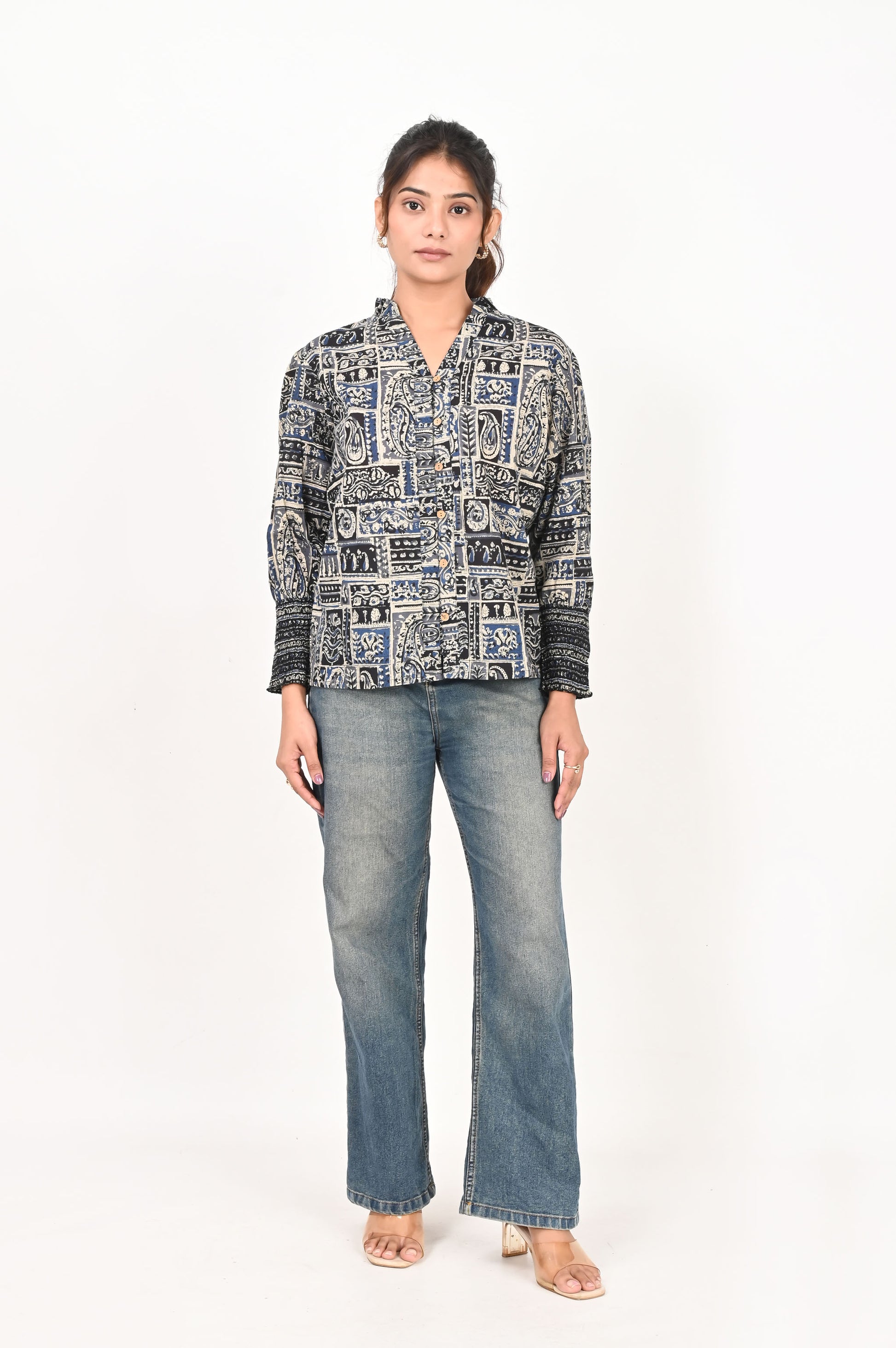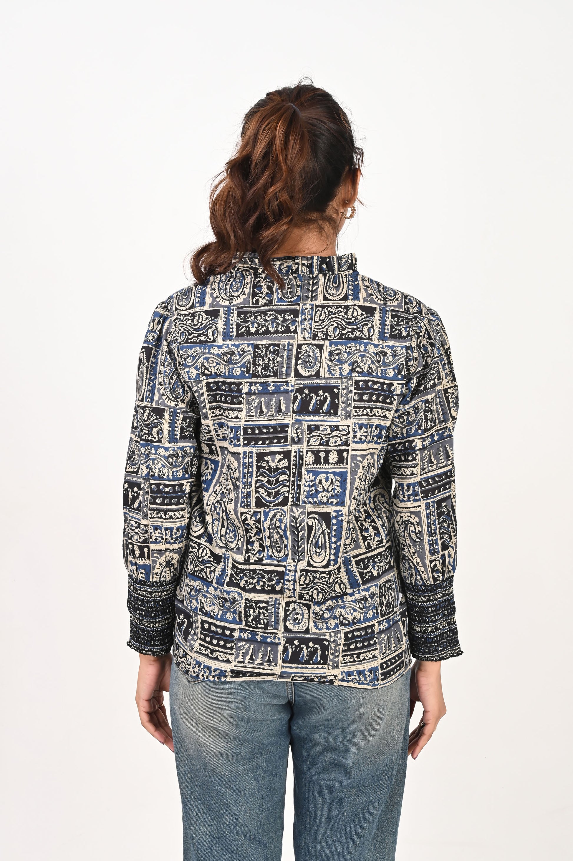 - Sleeves: Full-length sleeves finished with softly smocked cuffs