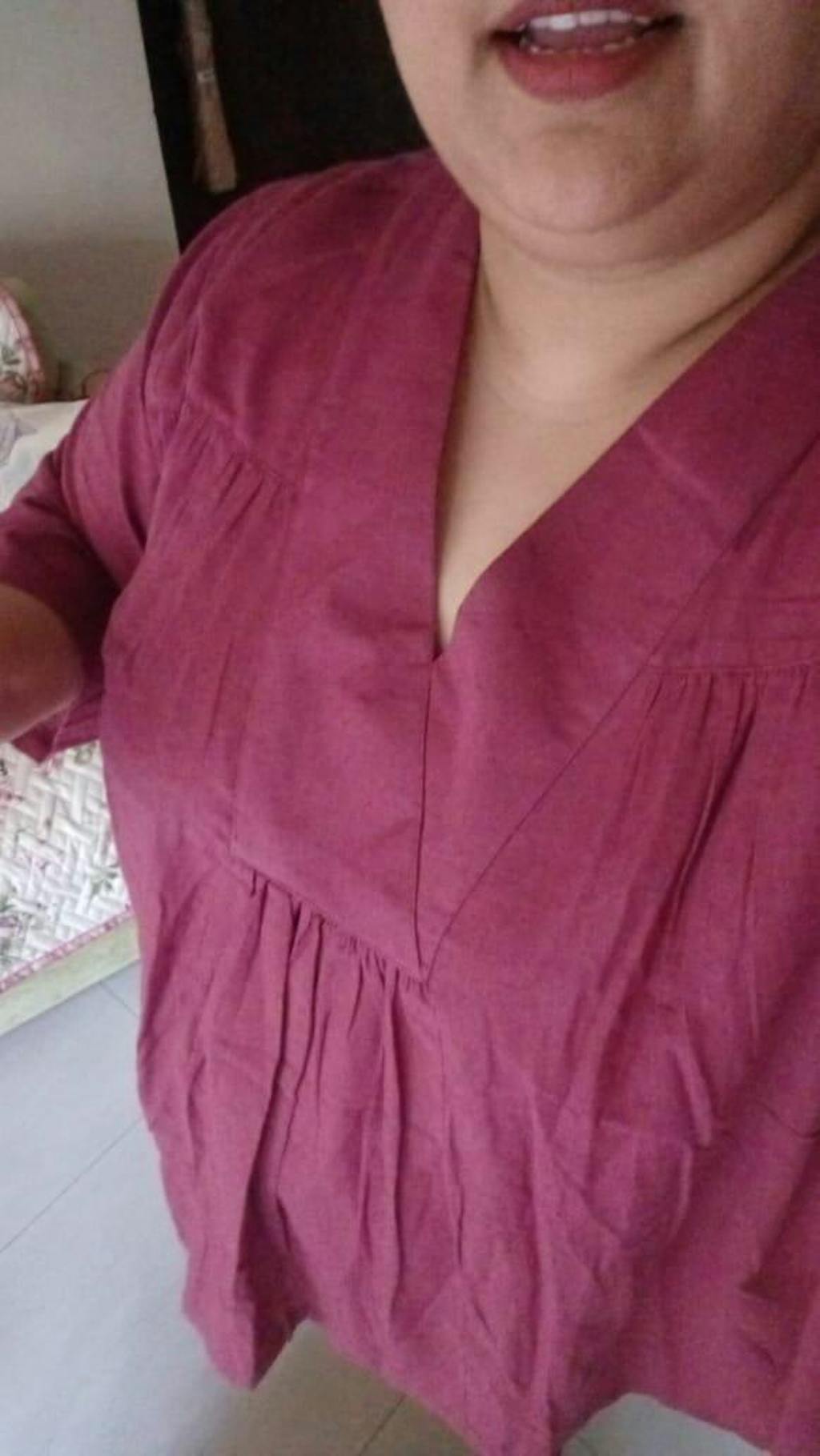 A soft cotton A-line tunic in a rich purple hue, designed with full sleeves and a flattering V-neck. Features elegant gathers from the yoke and shoulders for added grace—perfect for both casual and formal wear.